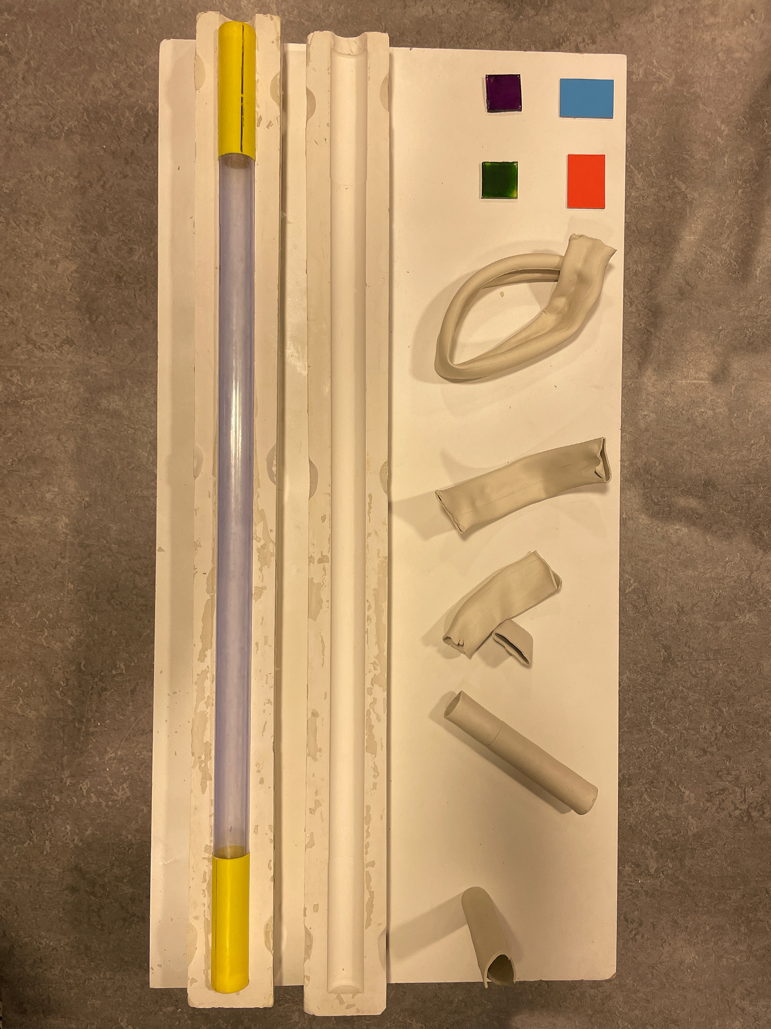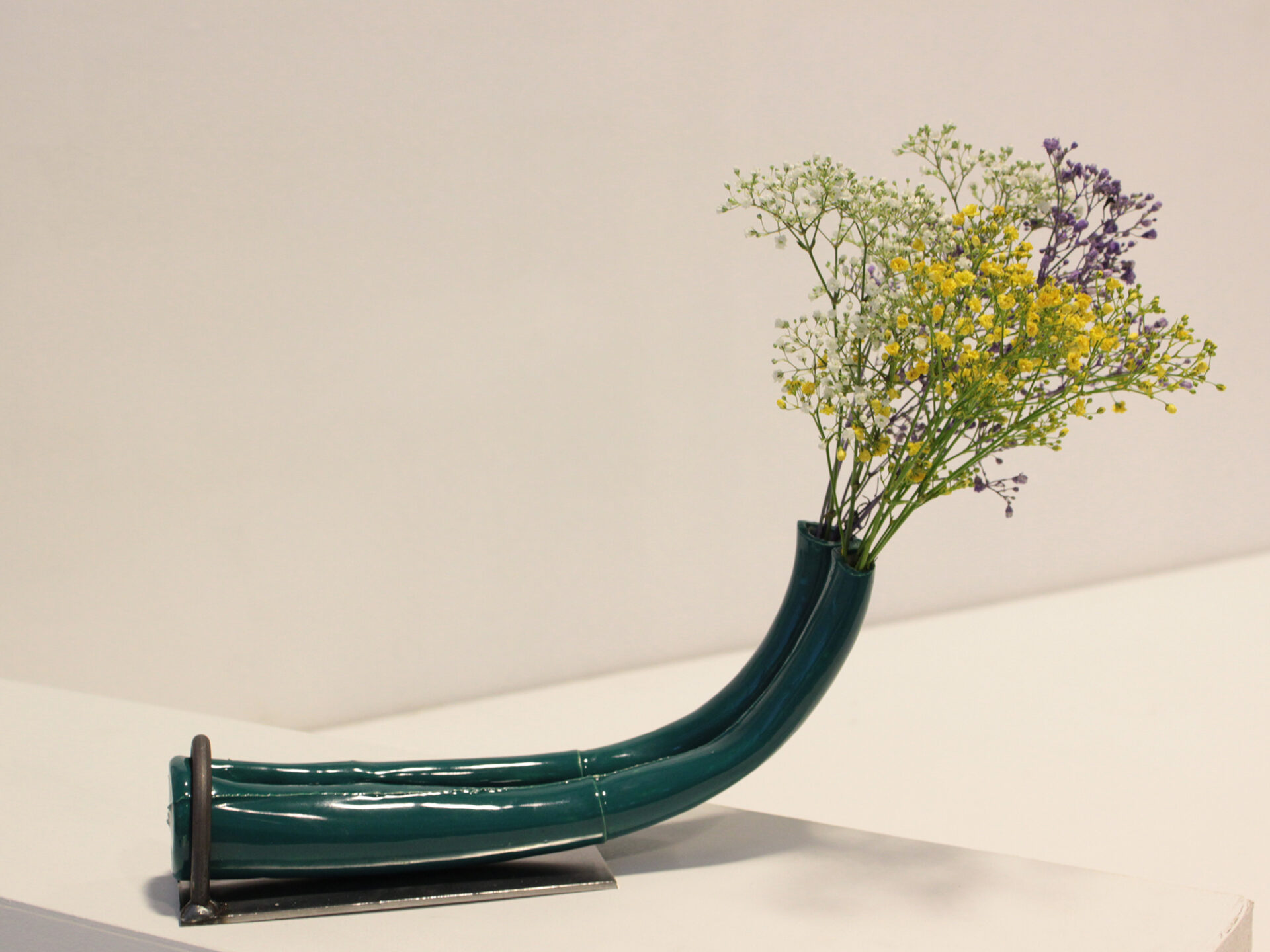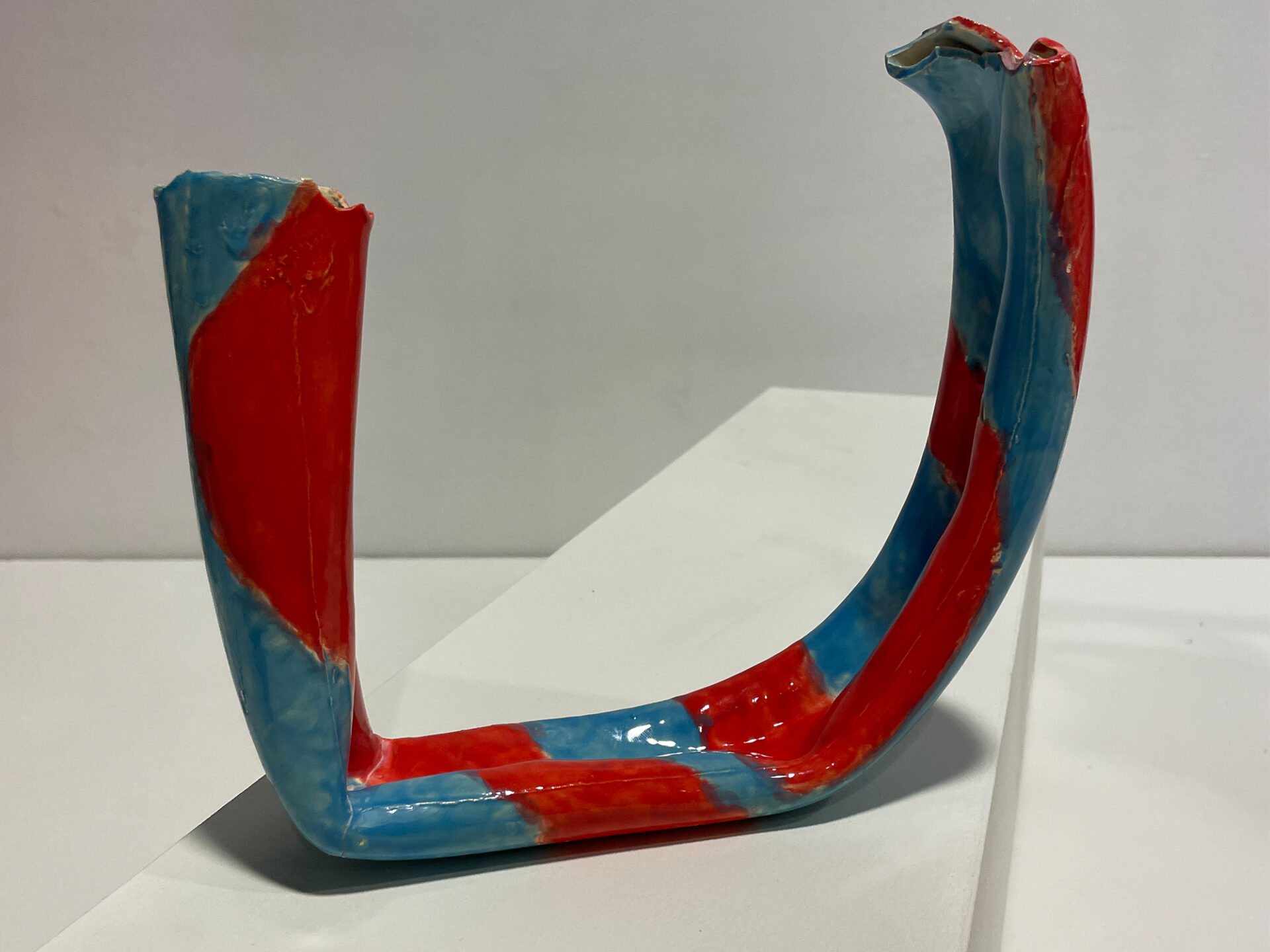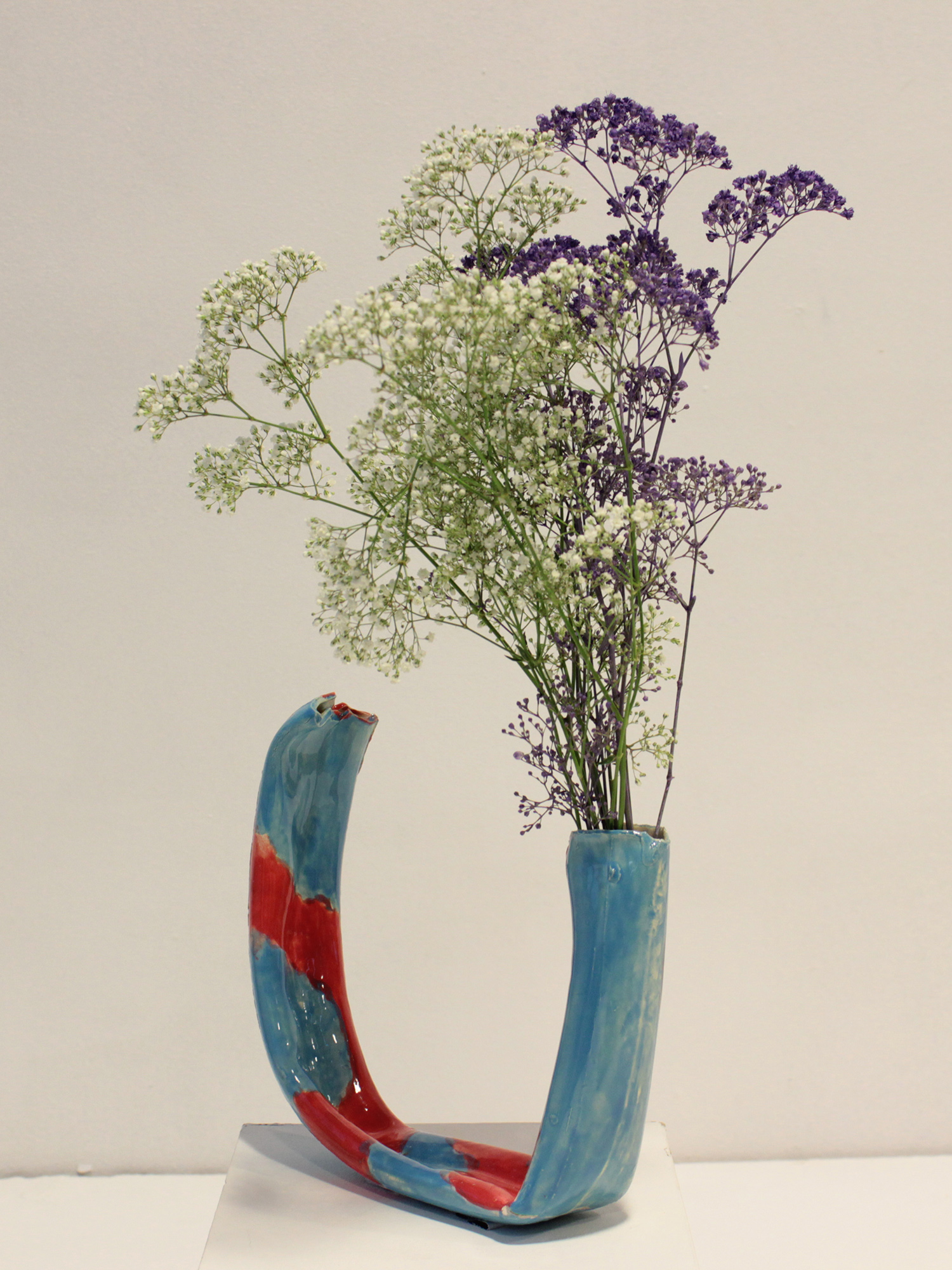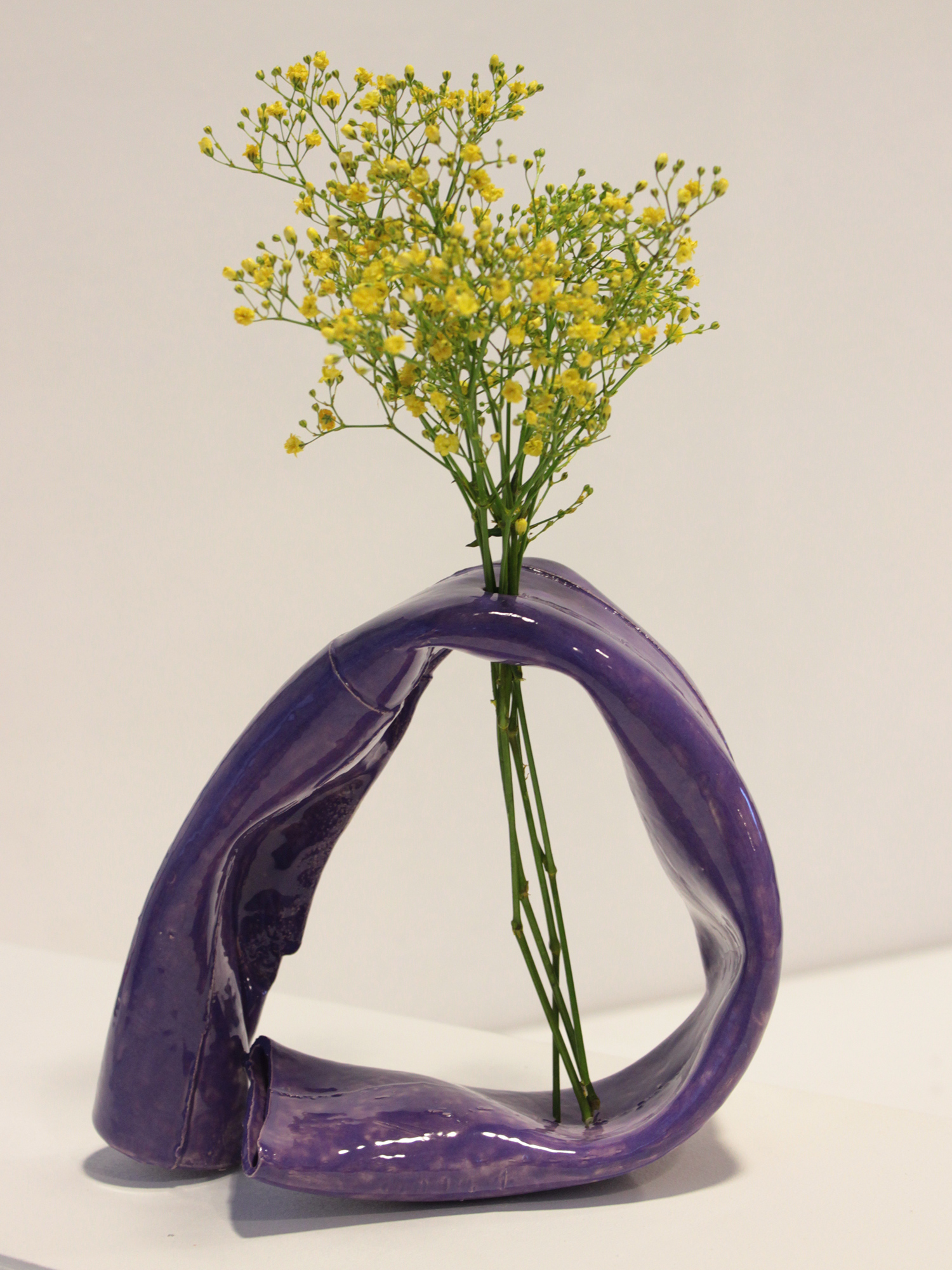 A series of vases inspired by the flexibility and durability of bike tyres inner tubes. Made from a plaster mould and afterwards shaped by hand. Liquid clay for function and clear and coloured glaze for ensuring waterproofness.