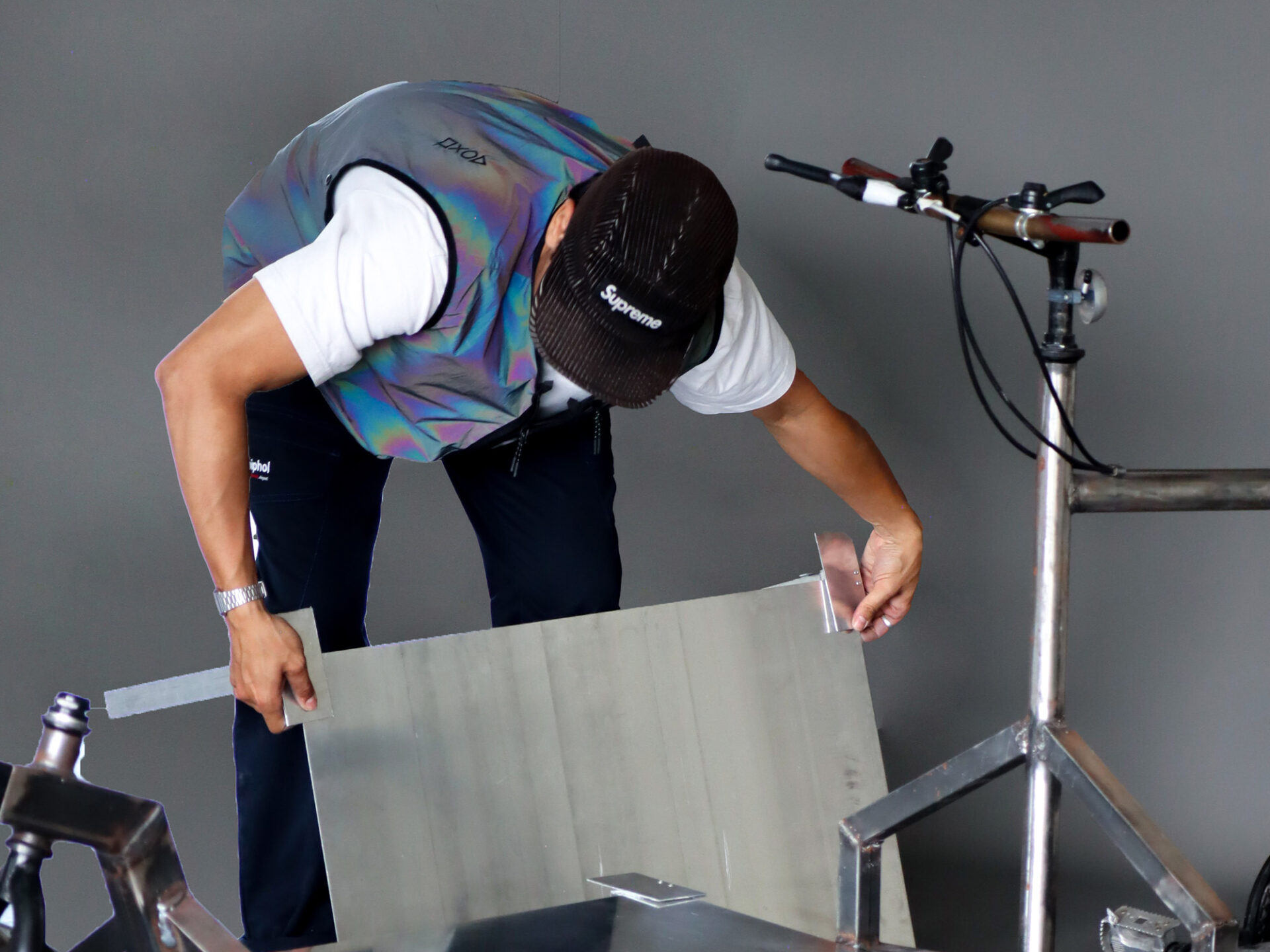 With a passion for both art and food, Ezra Vollmeier integrates an alternative exhibition platform and pop-up kitchen onto a custom cargo bike.