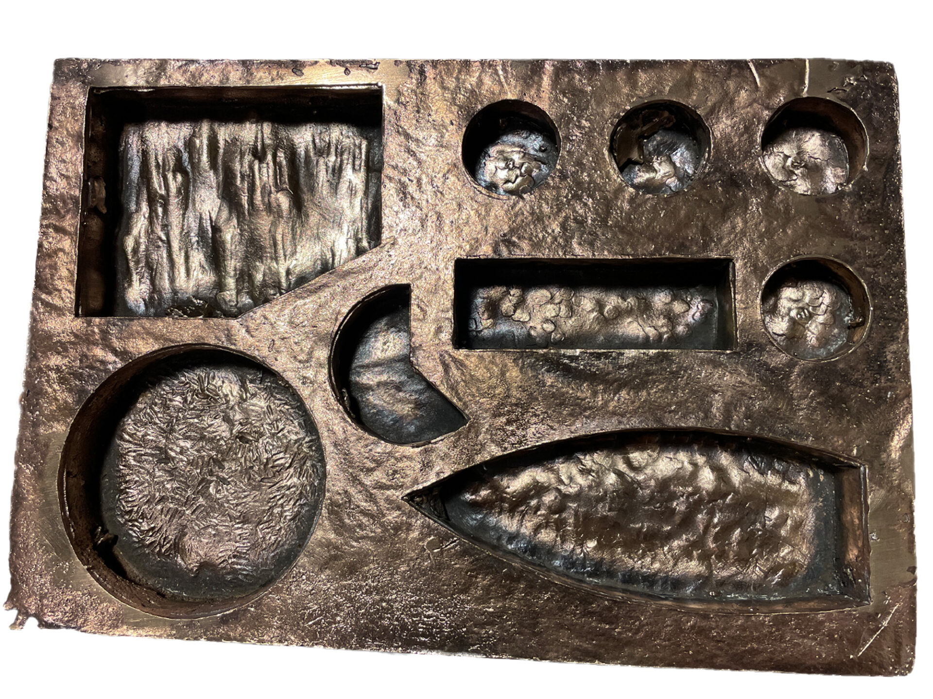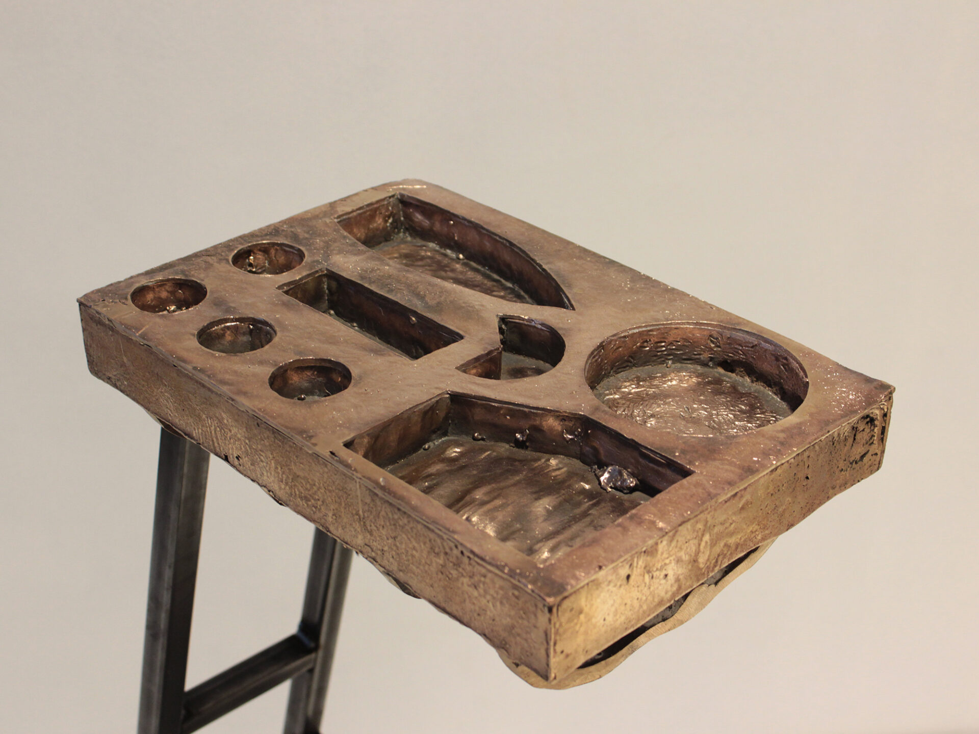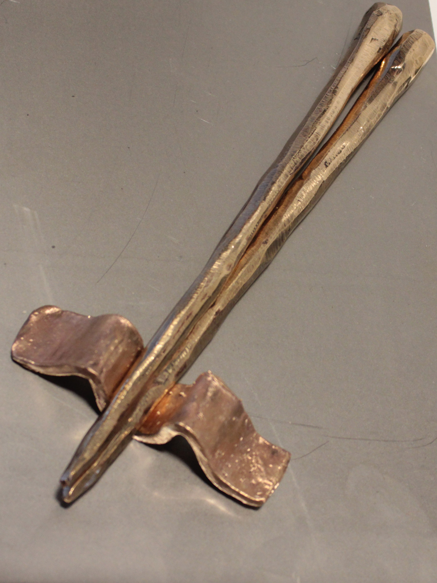Since I always dreamed of eating a bento box in Japan, I thought I would come my dream a bit closer if I would cast a bento box in bronze. Within the set you also find Chopsticks and a wasabi grinder. Hand formed, casted with lost wax method, wire brushed and/or polished.